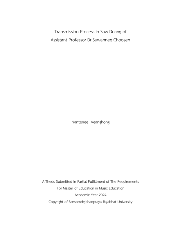 กระบวนการถ่ายทอดการบรรเลงซอด้วงของผู้ช่วยศาสตราจารย์ ดร.สุวรรณี ชูเสน