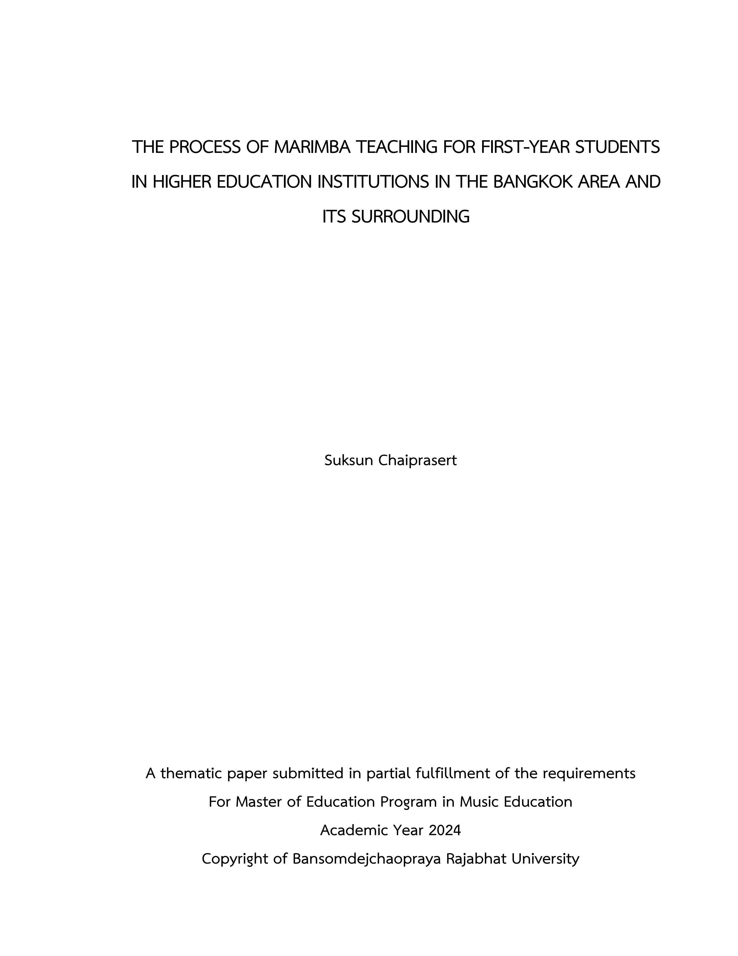 กระบวนการจัดการเรียนการสอนมาริมบาสำหรับนักศึกษาชั้นปีที่ 1 ในสถาบันอุดมศึกษาเขตกรุงเทพมหานครและปริมณฑล