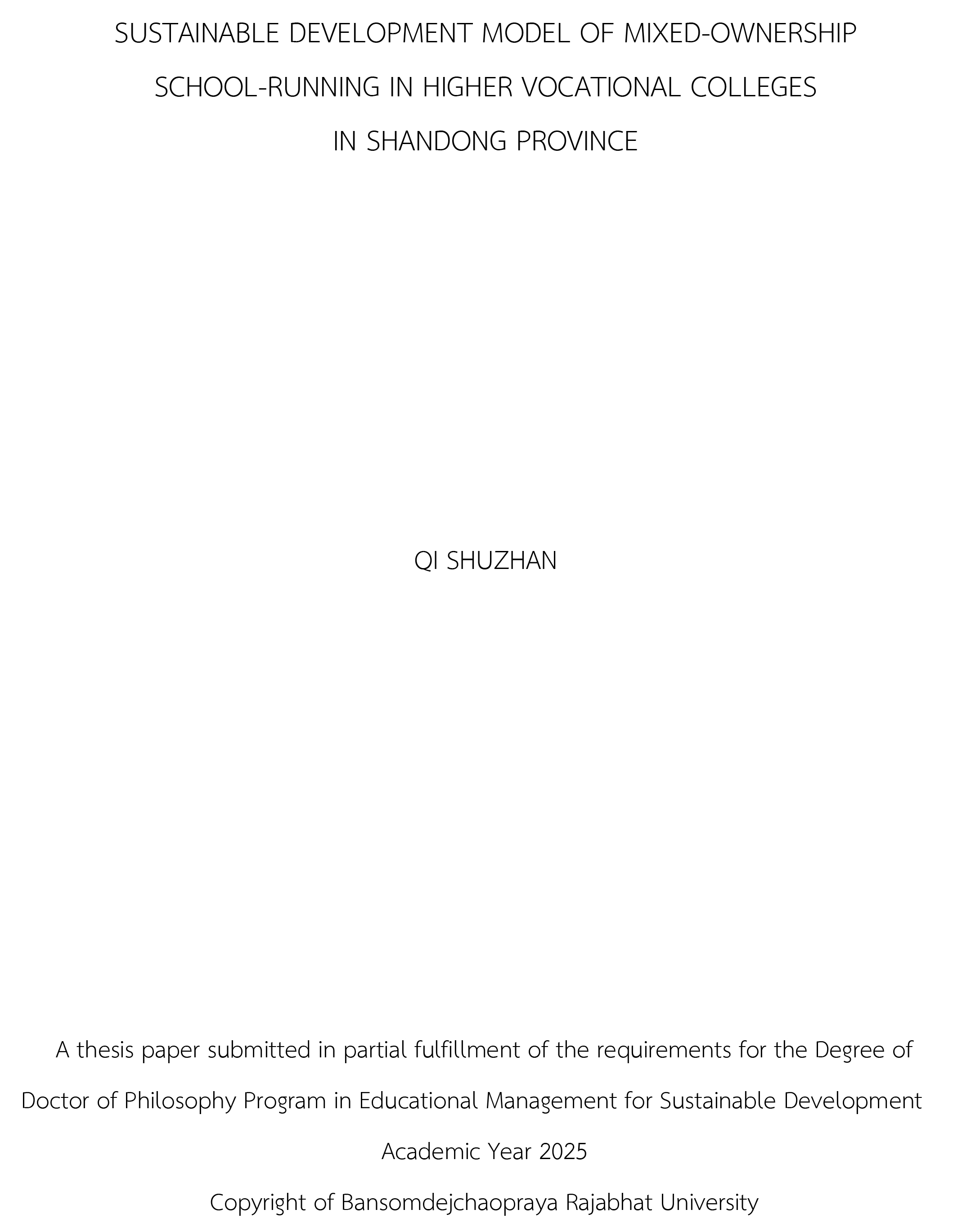 Sustainable Development Model of Mixed-Ownership School-Running in Higher Vocational Colleges in Shandong Province