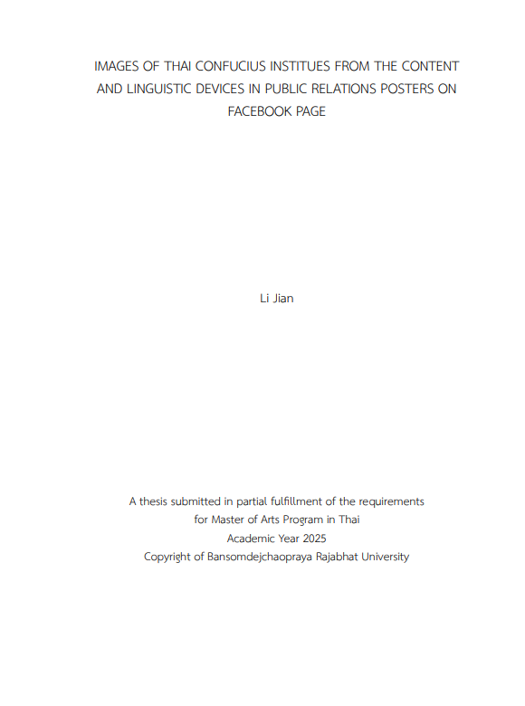 ภาพลักษณ์สถาบันขงจื่อไทยจากเนื้อหาและกลวิธี การใช้ภาษาในแผ่นป้ายประชาสัมพันธ์เพจเฟซบุ๊ก