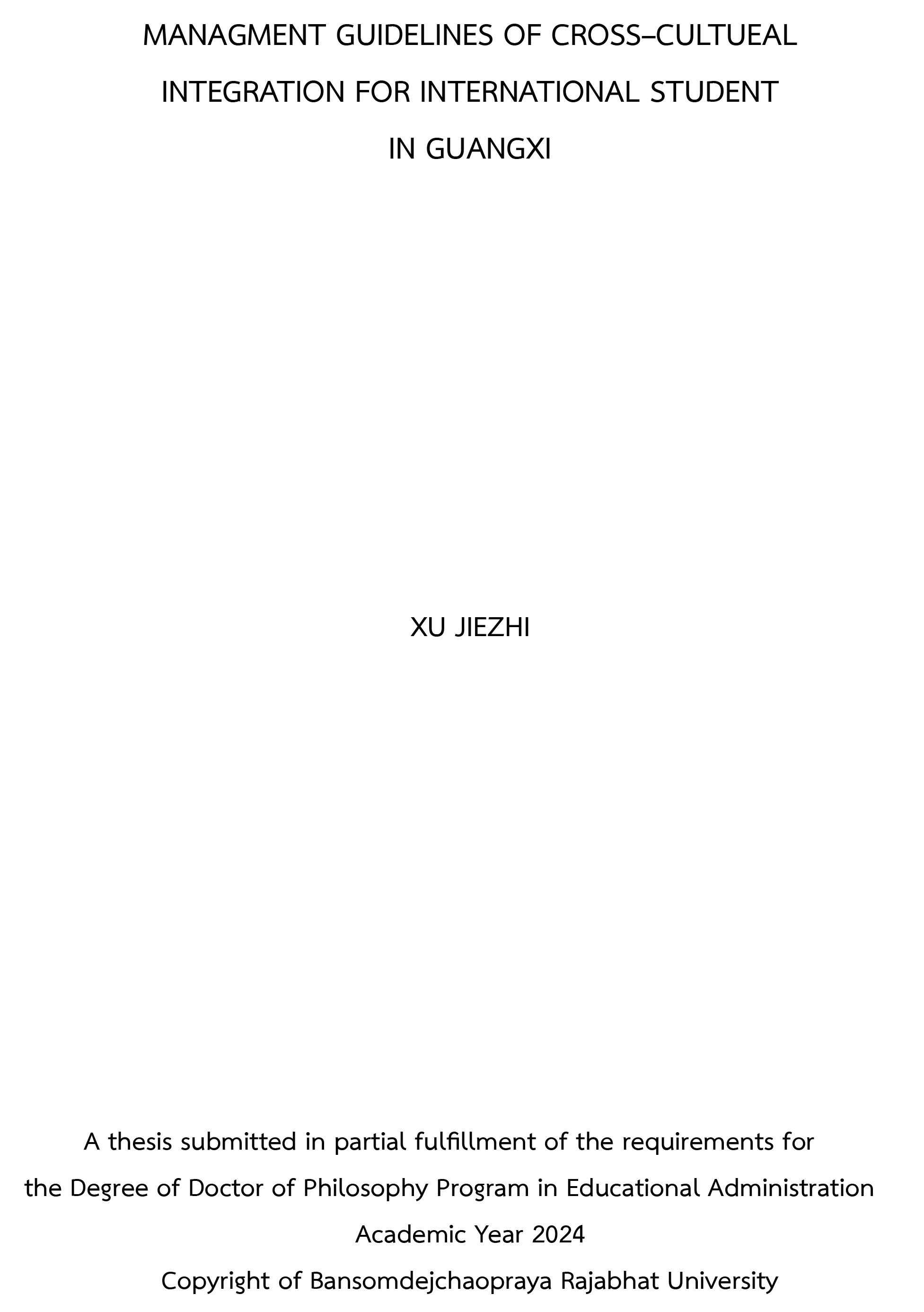 Management guidelines of cross–cultural integration for international student in Guangxi