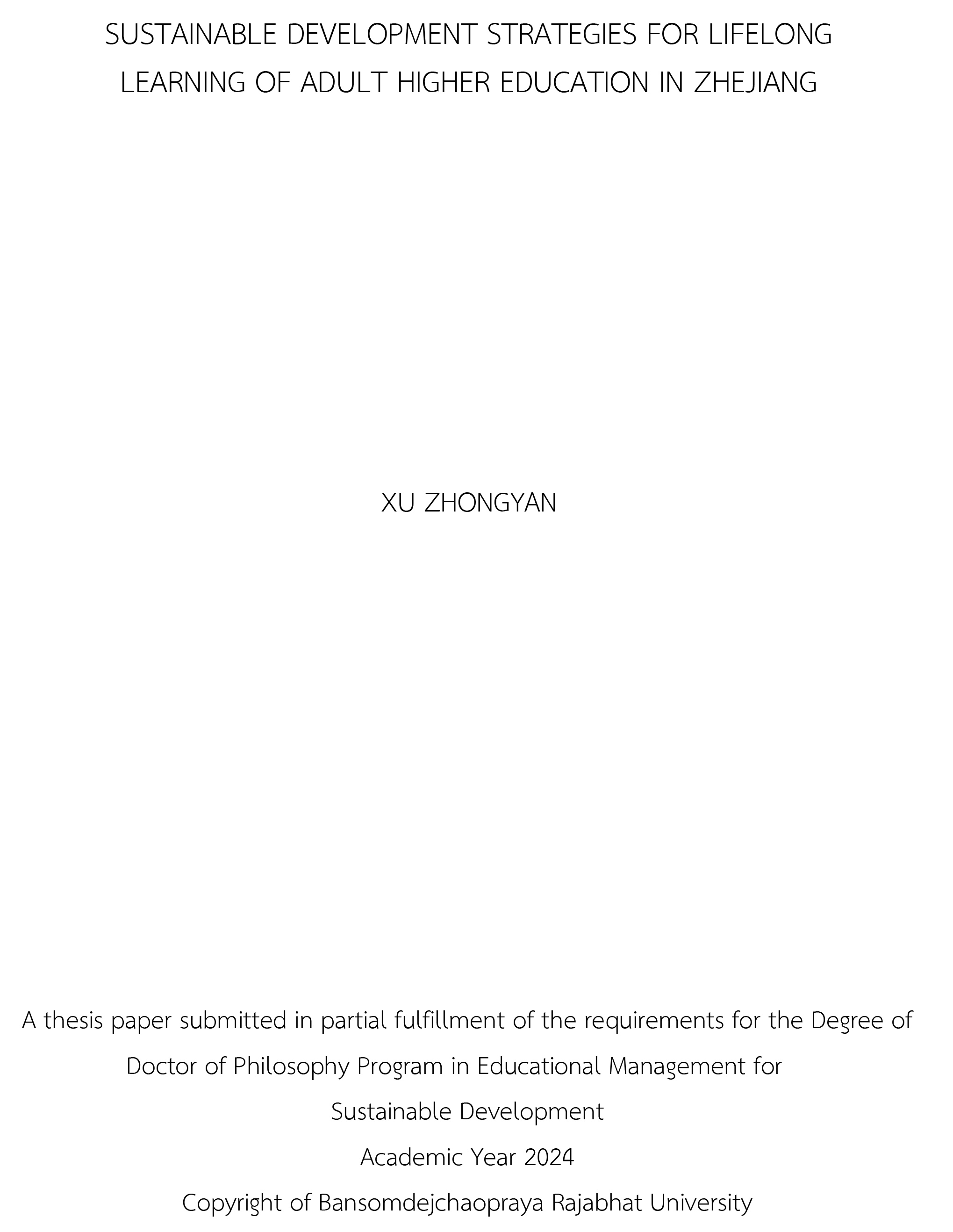 Sustainable Development Strategies for Lifelong Learning of Adult Higher Education in ZheJiang