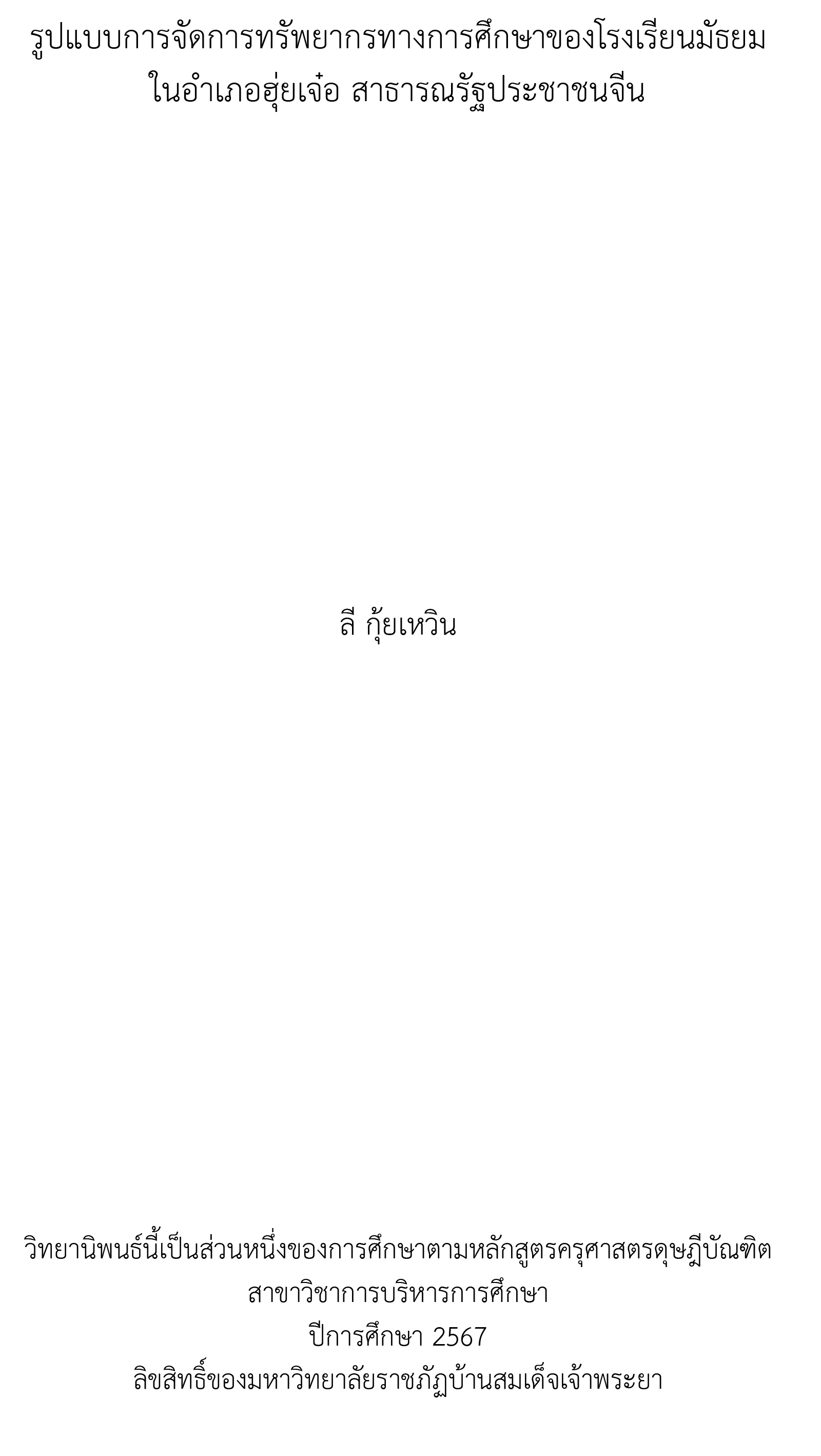 รูปแบบการจัดการทรัพยากรทางการศึกษาของโรงเรียนมัธยมในอำเภอฮุ่ยเจ๋อ สาธารณรัฐประชาชนจีน