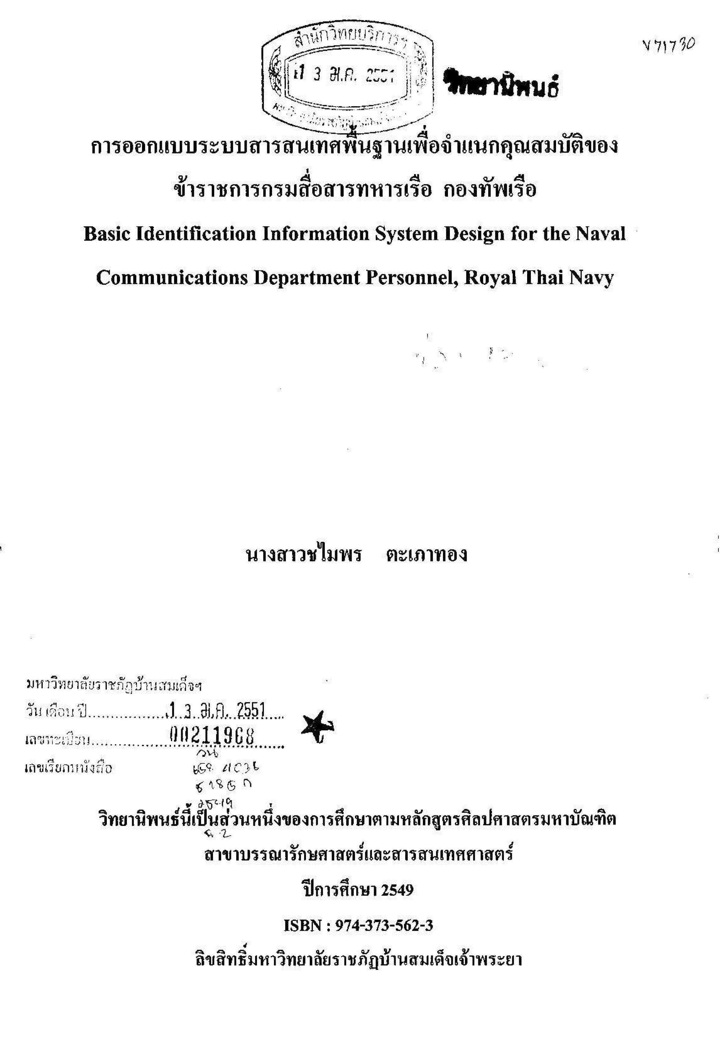 การออกแบบระบบสารสนเทศพื้นฐานเพื่อจำแนกคุณสมบัติของข้าราชการกรมสื่อสารทหารเรือ กองทัพเรือ