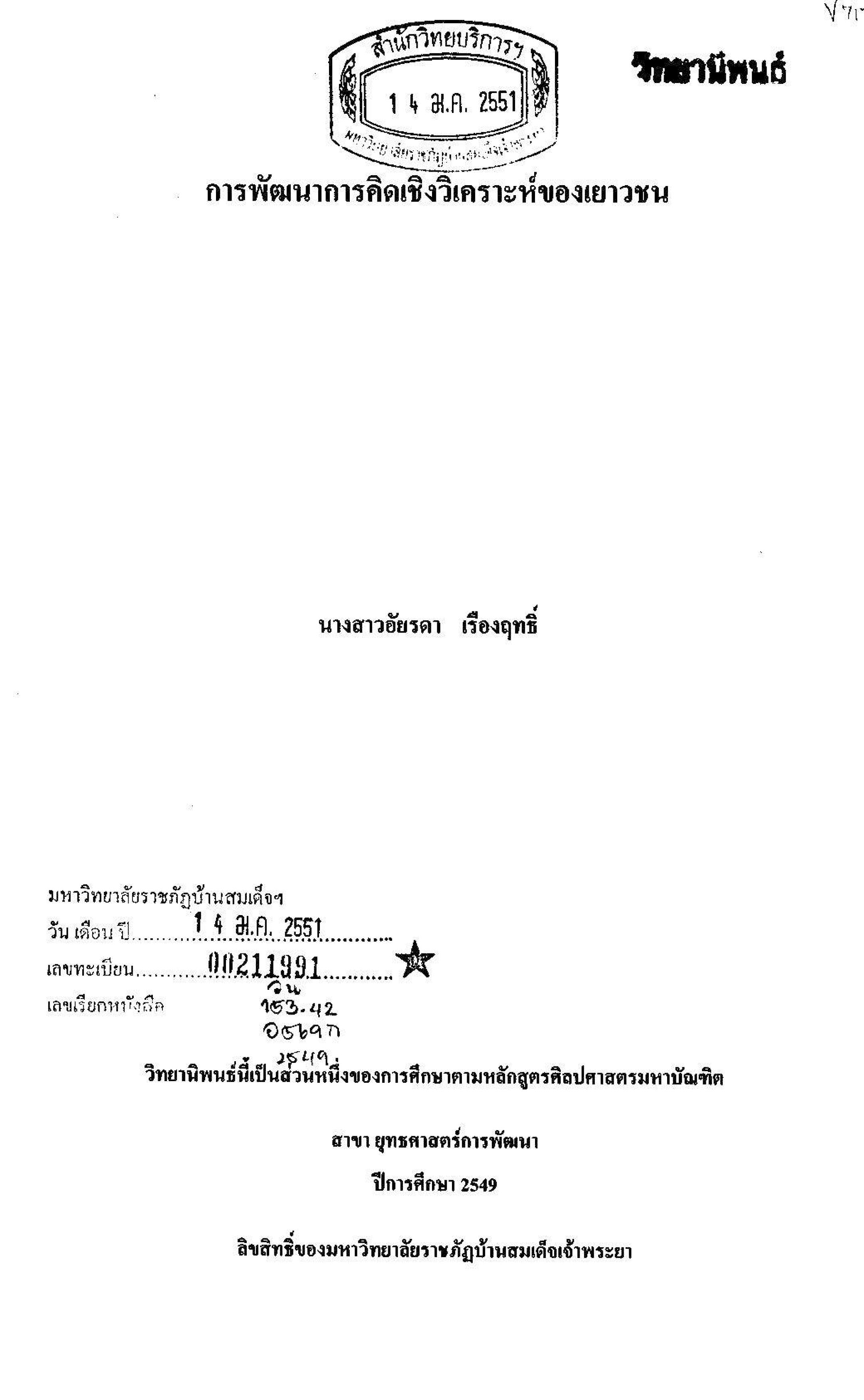 การพัฒนาการคิดเชิงวิเคราะห์ของเยาวชน