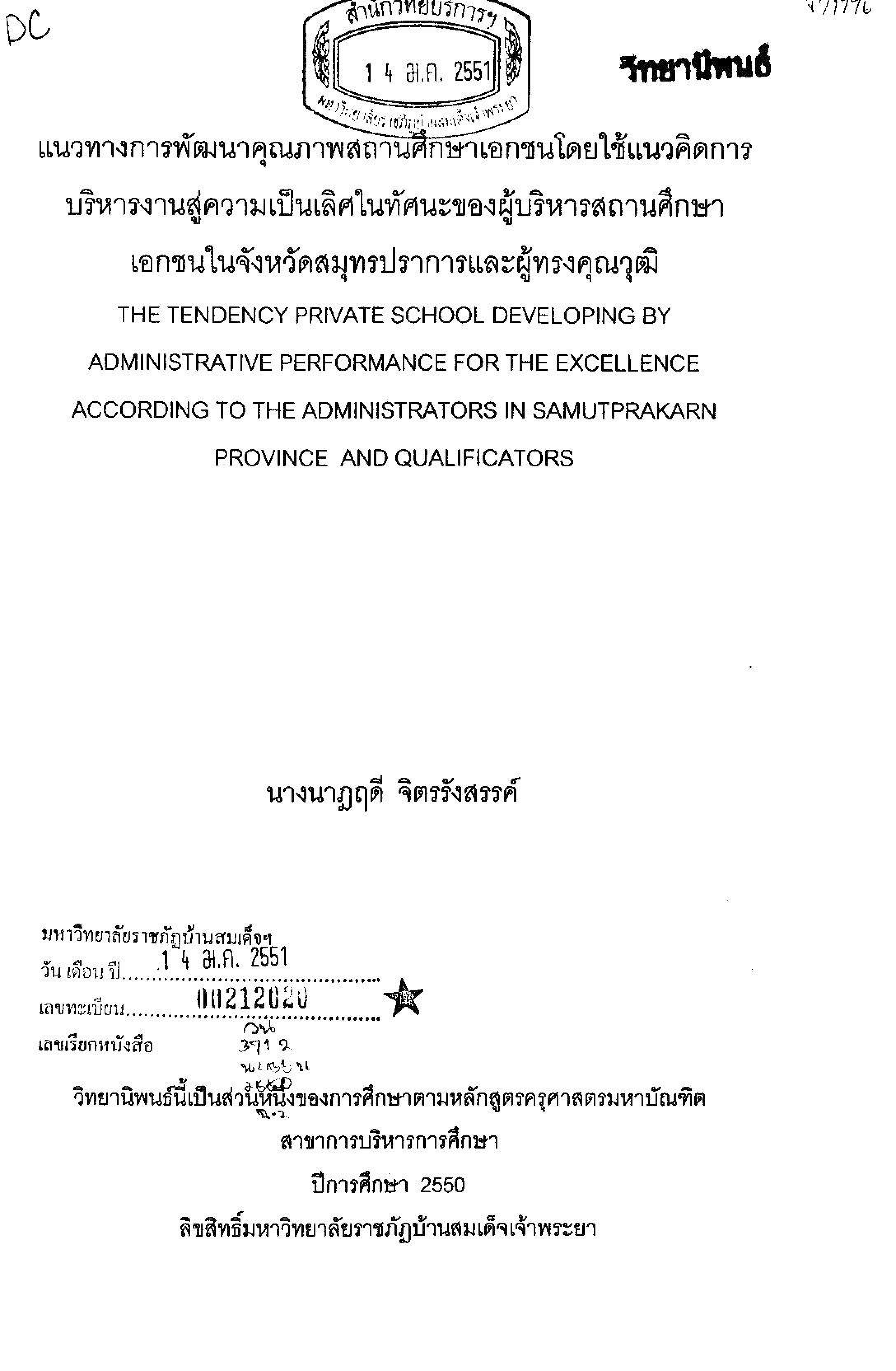แนวทางการพัฒนาคุณภาพสถานศึกษาเอกชนโดยใช้แนวคิดการบริการงานสู่ความเป็นเลิศในทัศนะของผู้บริการสถานศึกษาเอกชนในจังหวัดสมุทรปราการและผู้ทรงคุณวุฒิ
