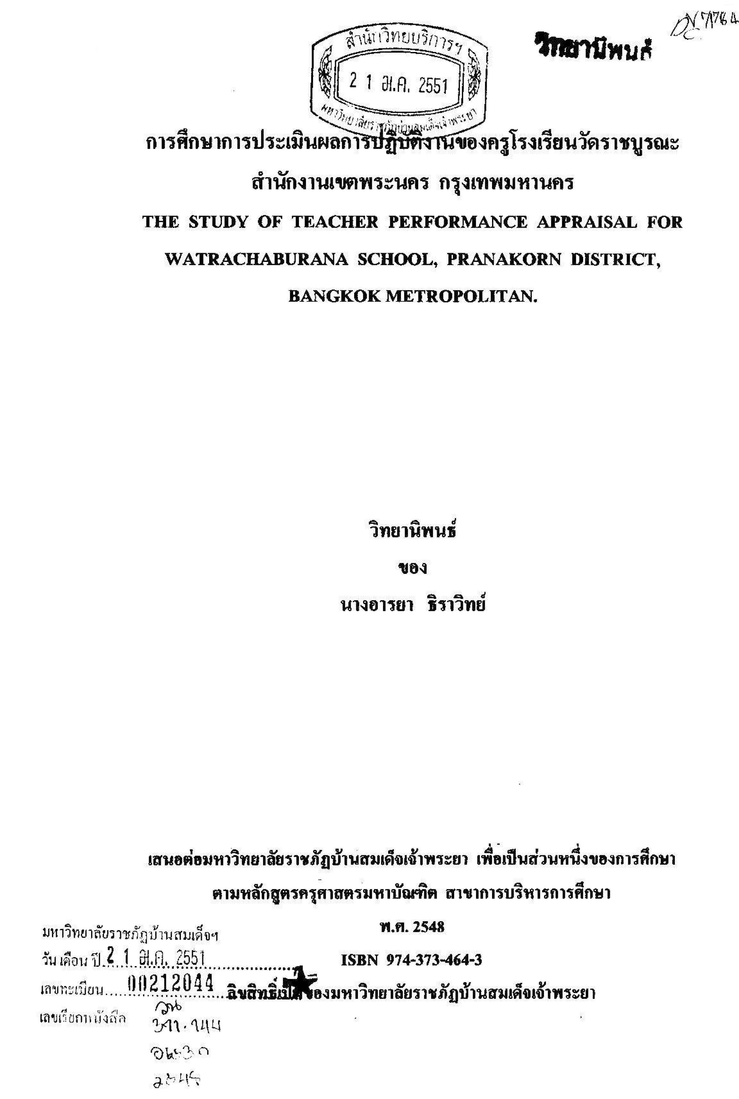 การศึกษาการประเมินผลการปฏิบัติงานของครูโรงเรียนวัดราชบูรณะ สำนักงานเขตพระนคร กรุงเทพมหานคร