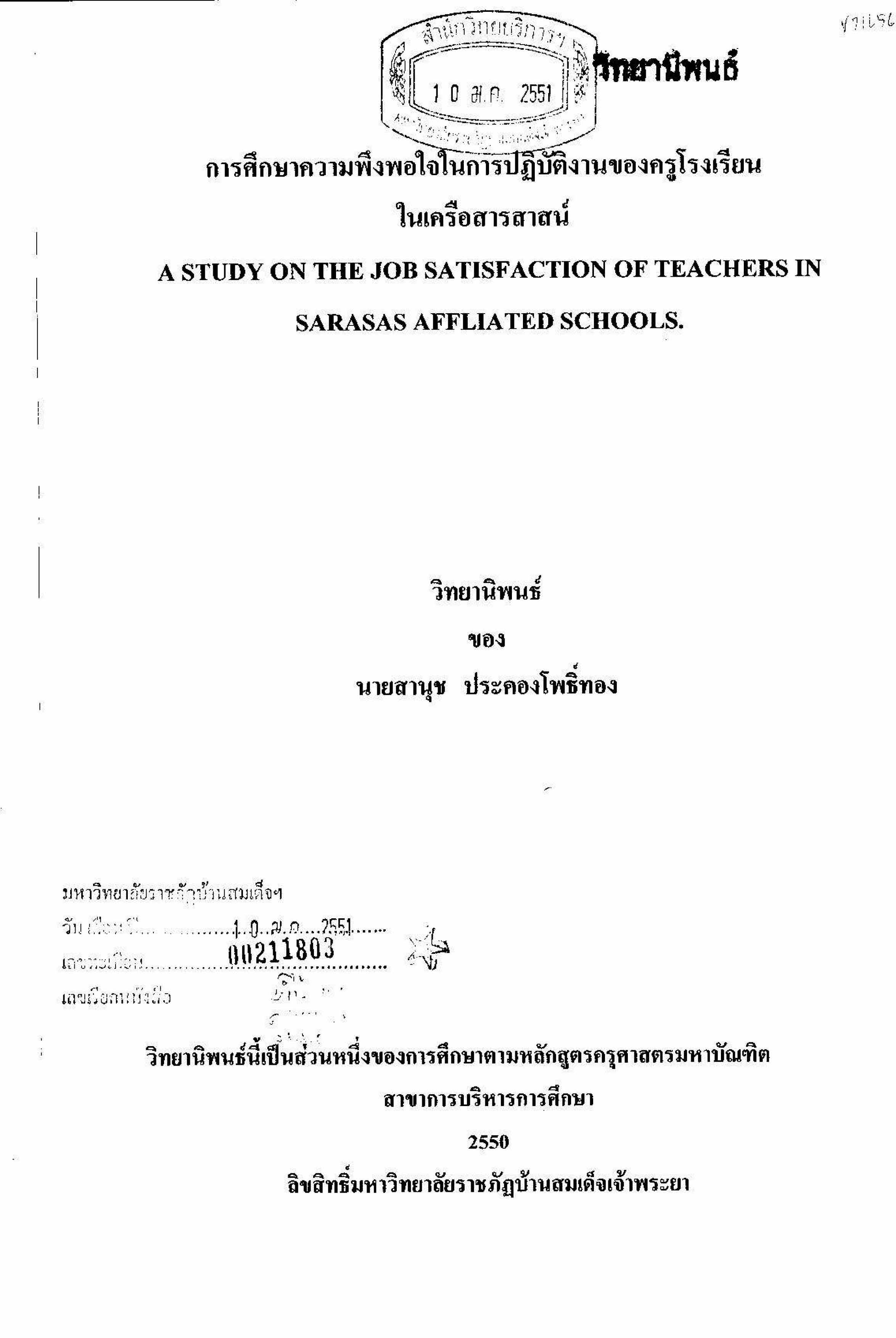 การศึกษาความพึงพอใจในการปฏิบัติงานของครูโรงเรียนในเครือสารสาสน์