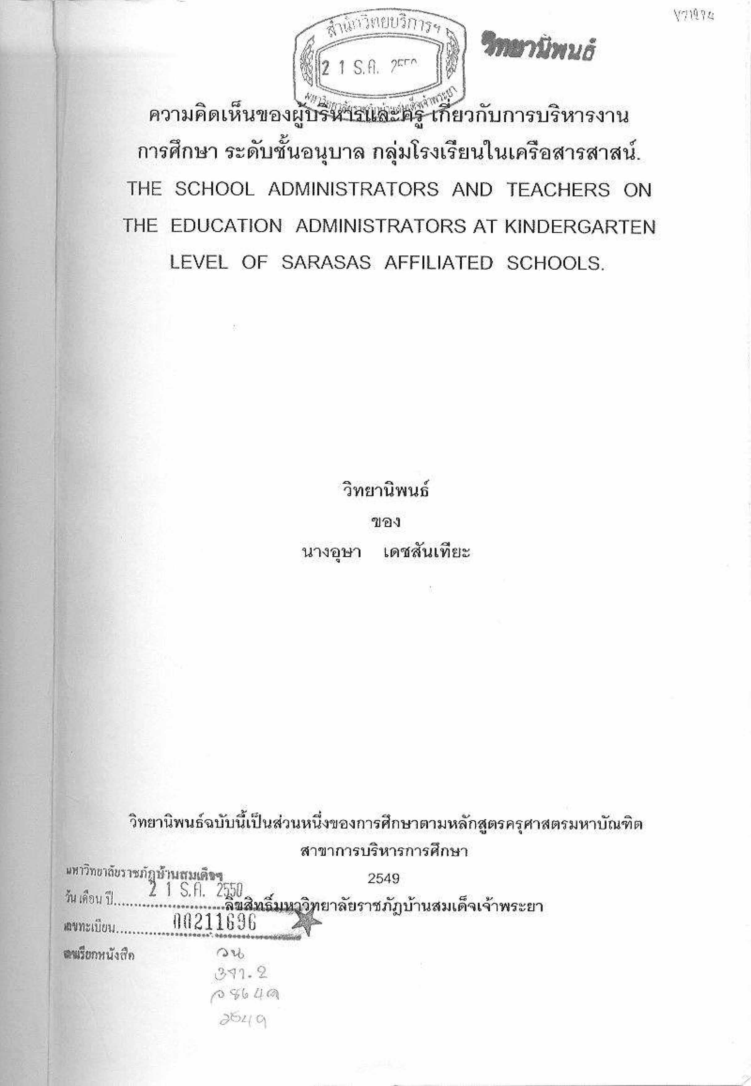 การบริหาร-- ไทย-- โรงเรียนอนุบาล