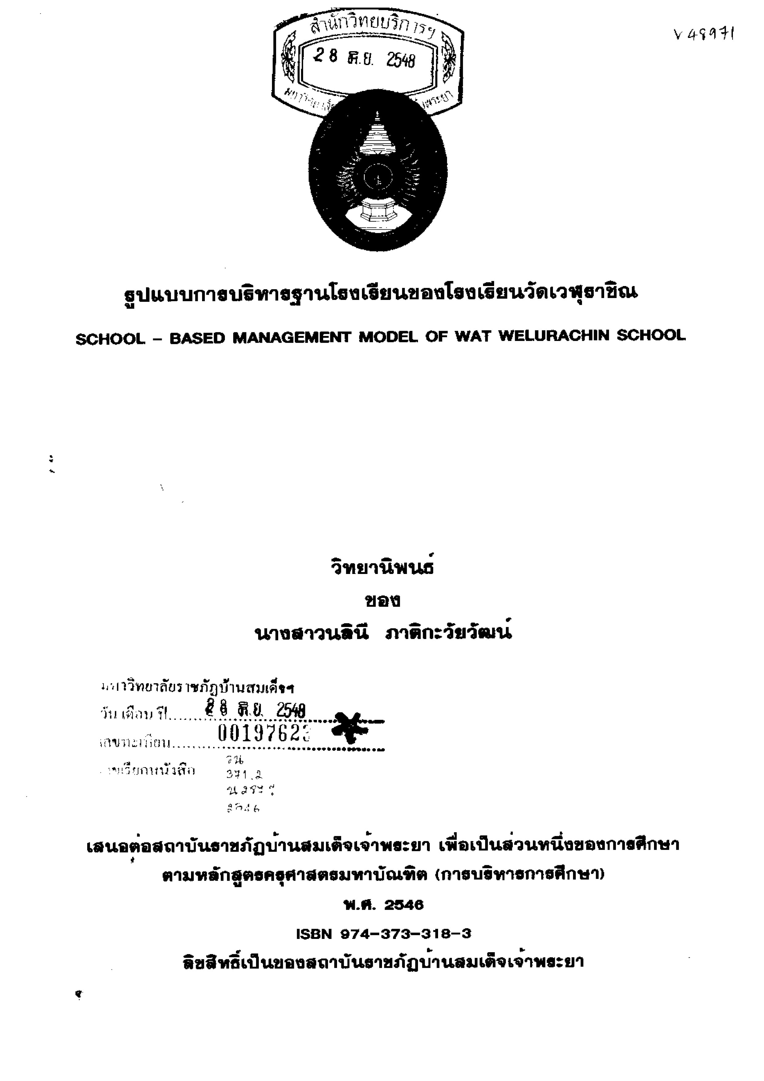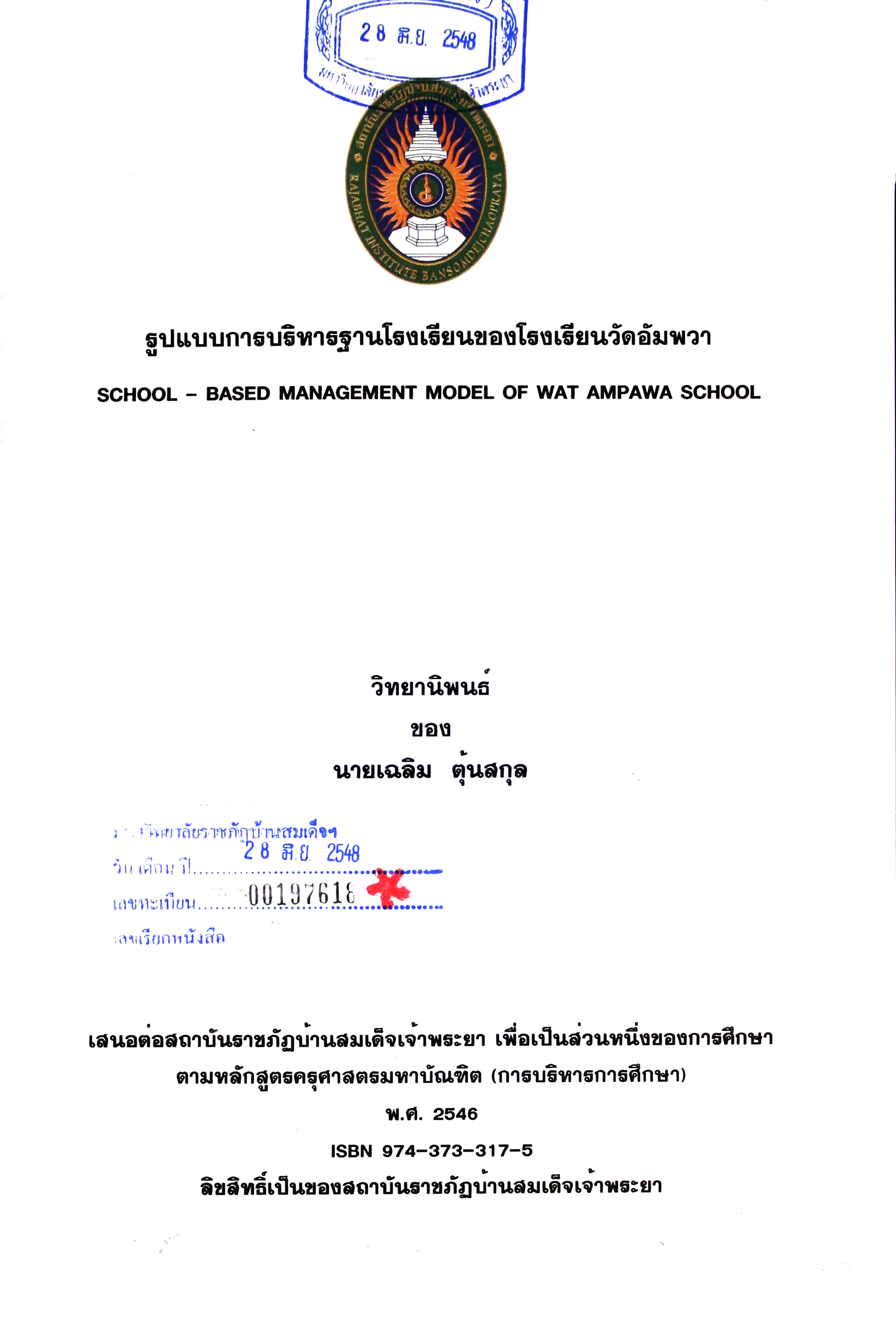 รูปแบบการบริหารฐานโรงเรียนของโรงเรียนวัดอัมพวา