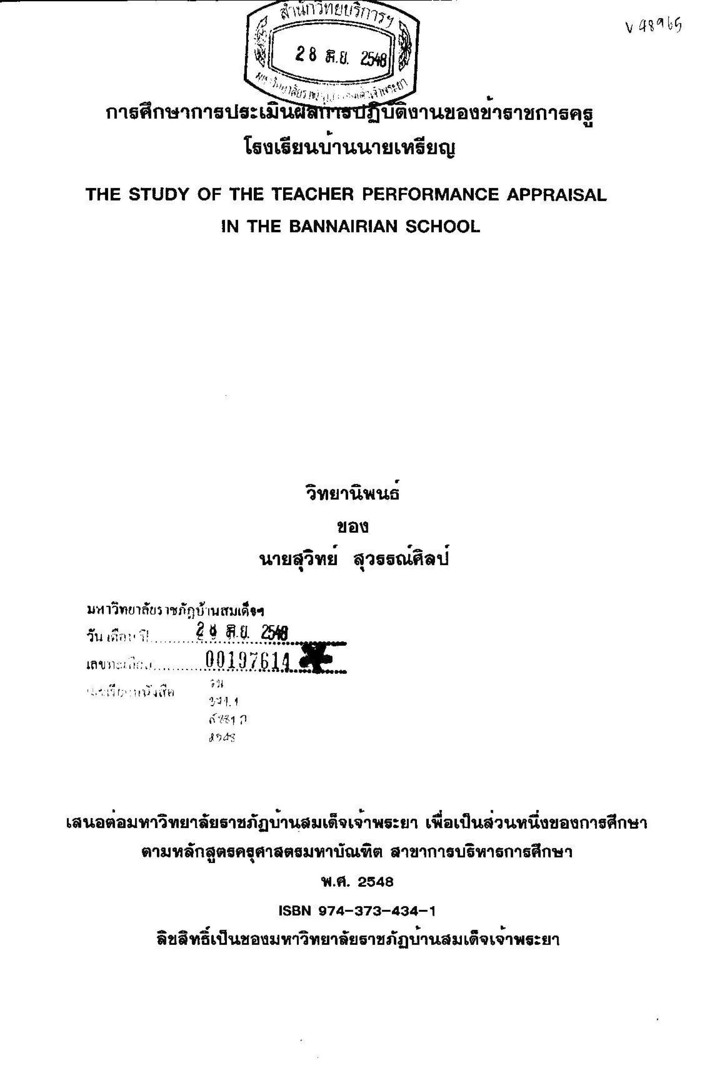 การศึกษาการประเมินผลการปฏิบัติงานของข้าราชการครูโรงเรียนบ้านนายเหรียญ