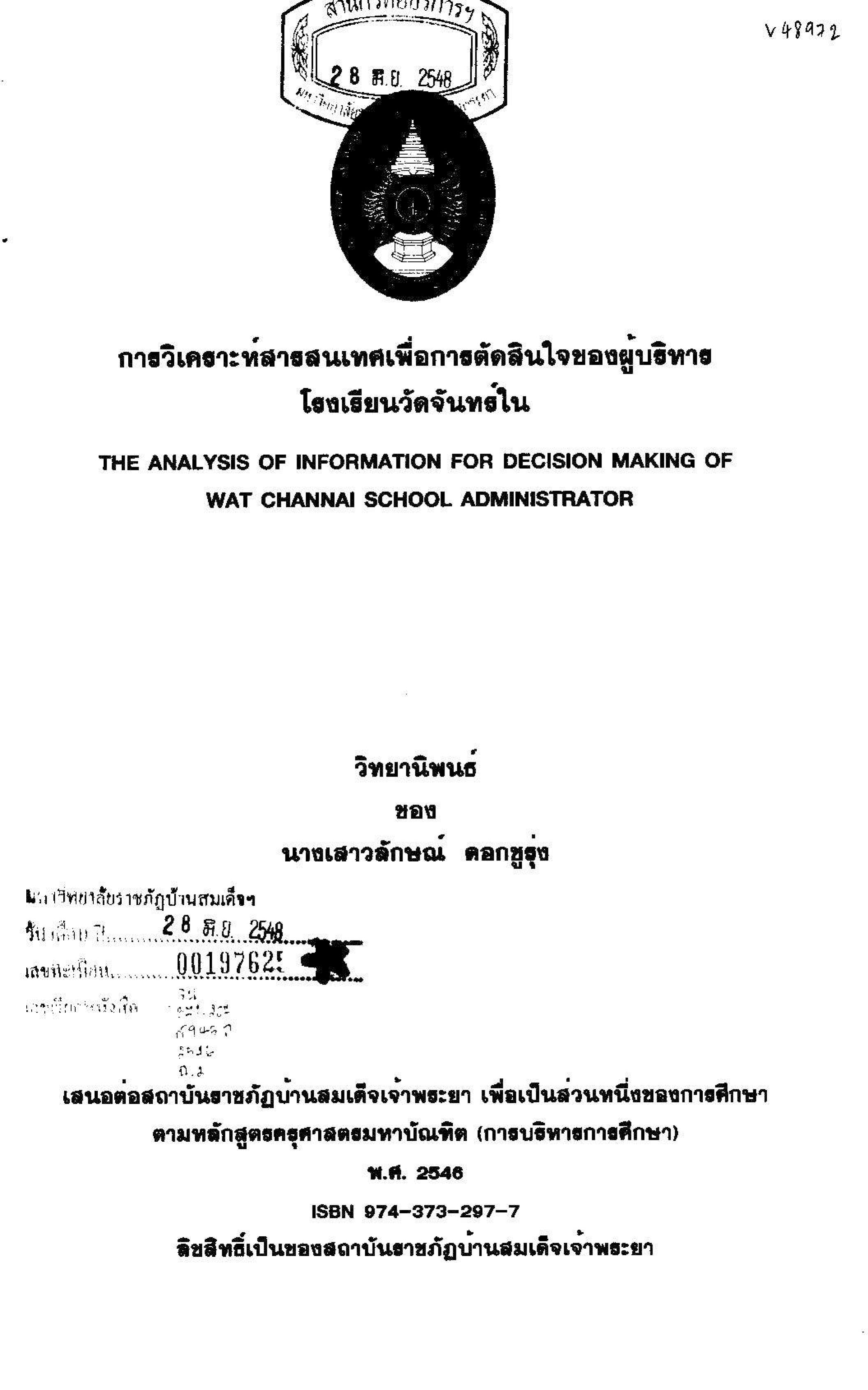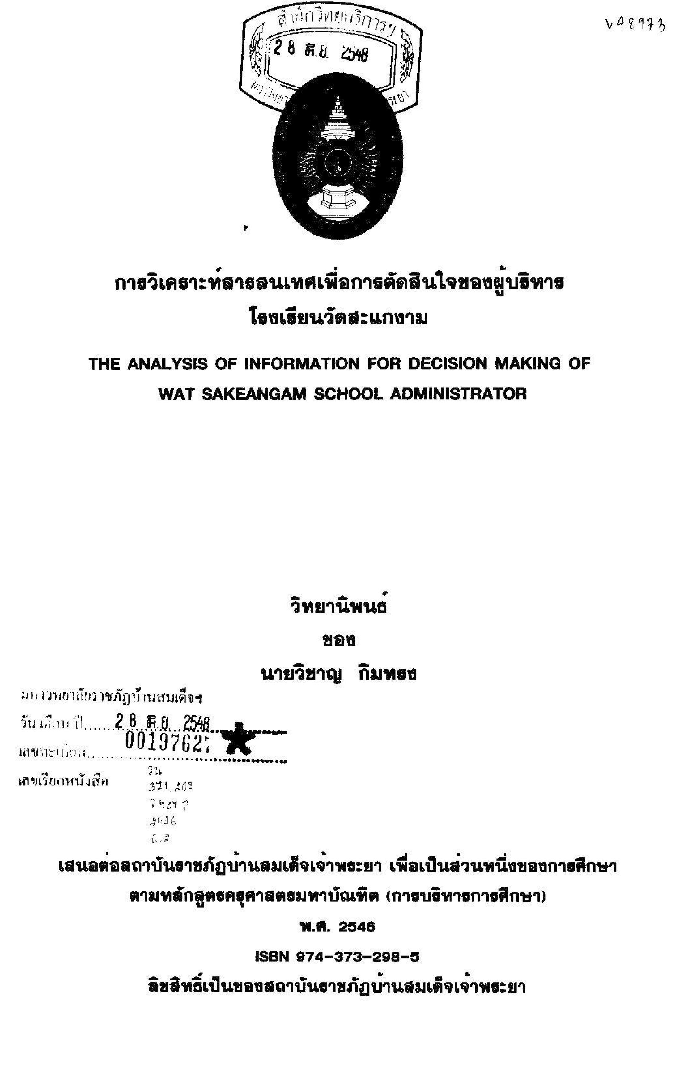 การวิเคราะห์สารสนเทศเพื่อการตัดสินใจของผู้บริหารโรงเรียนวัดสะแกงาม