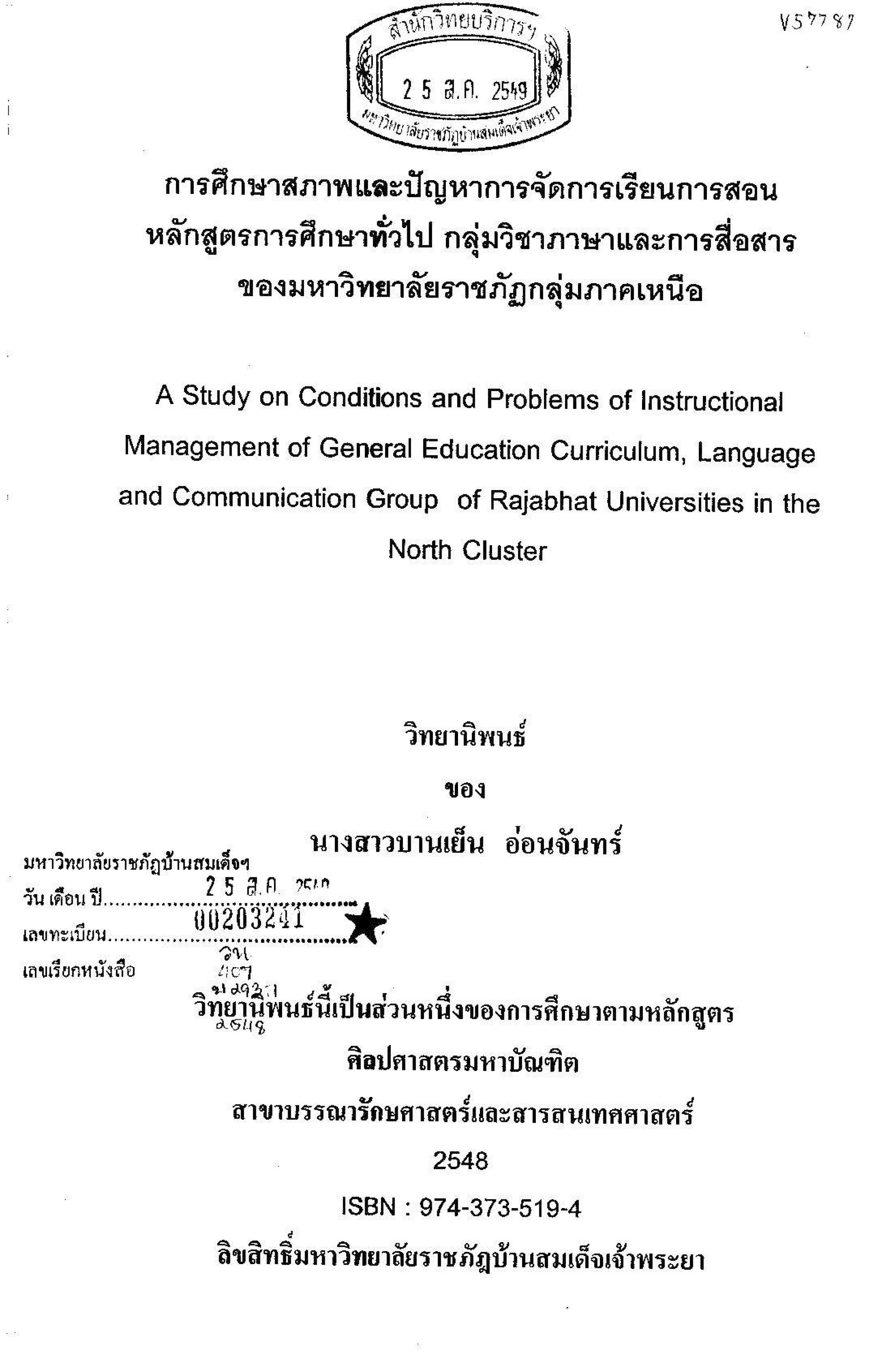การศึกษาสภาพและปัญหาการจัดการเรียนการสอนหลักสูตรการศึกษาทั่วไป กลุ่มวิชาภาษาและการสื่อสารของมหาวิทยาลัยราชภัฏกลุ่มภาคเหนือ