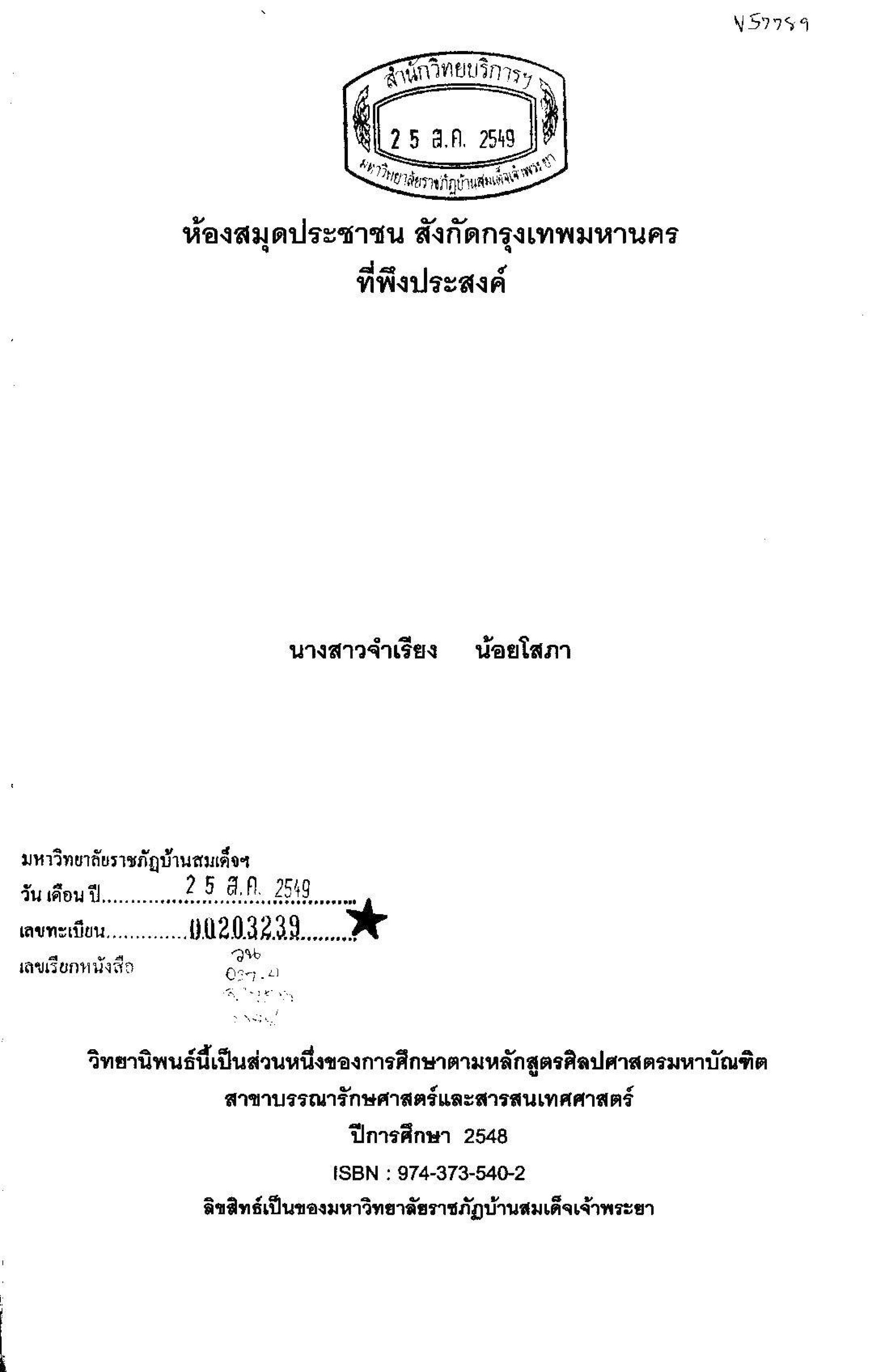 ห้องสมุดประชาชน--ไทย-- กรุงเทพฯ