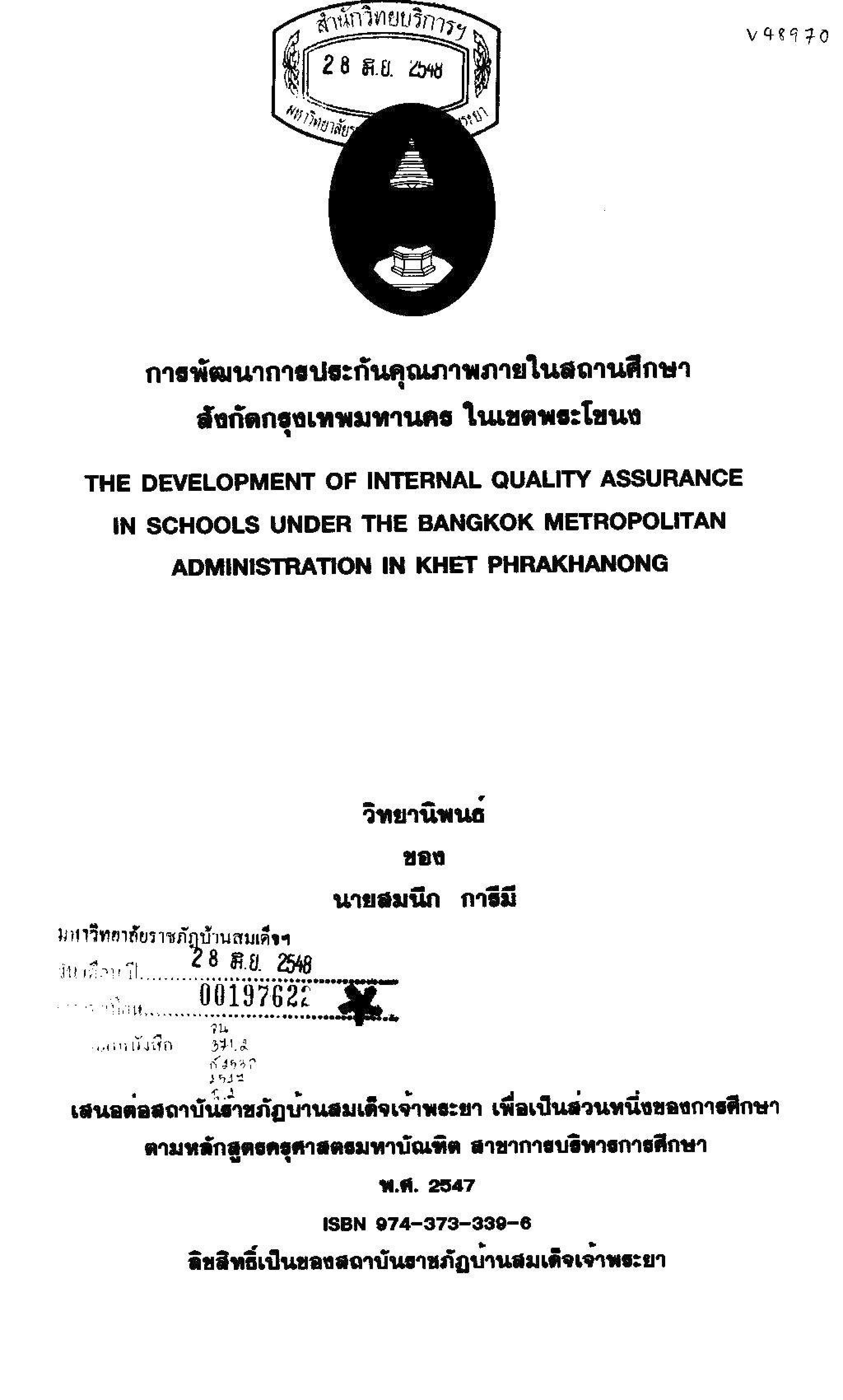 การพัฒนาการประกันคุณภาพภายในสถานศึกษา สังกัดกรุงเทพมหานคร ในเขตพระโขนง