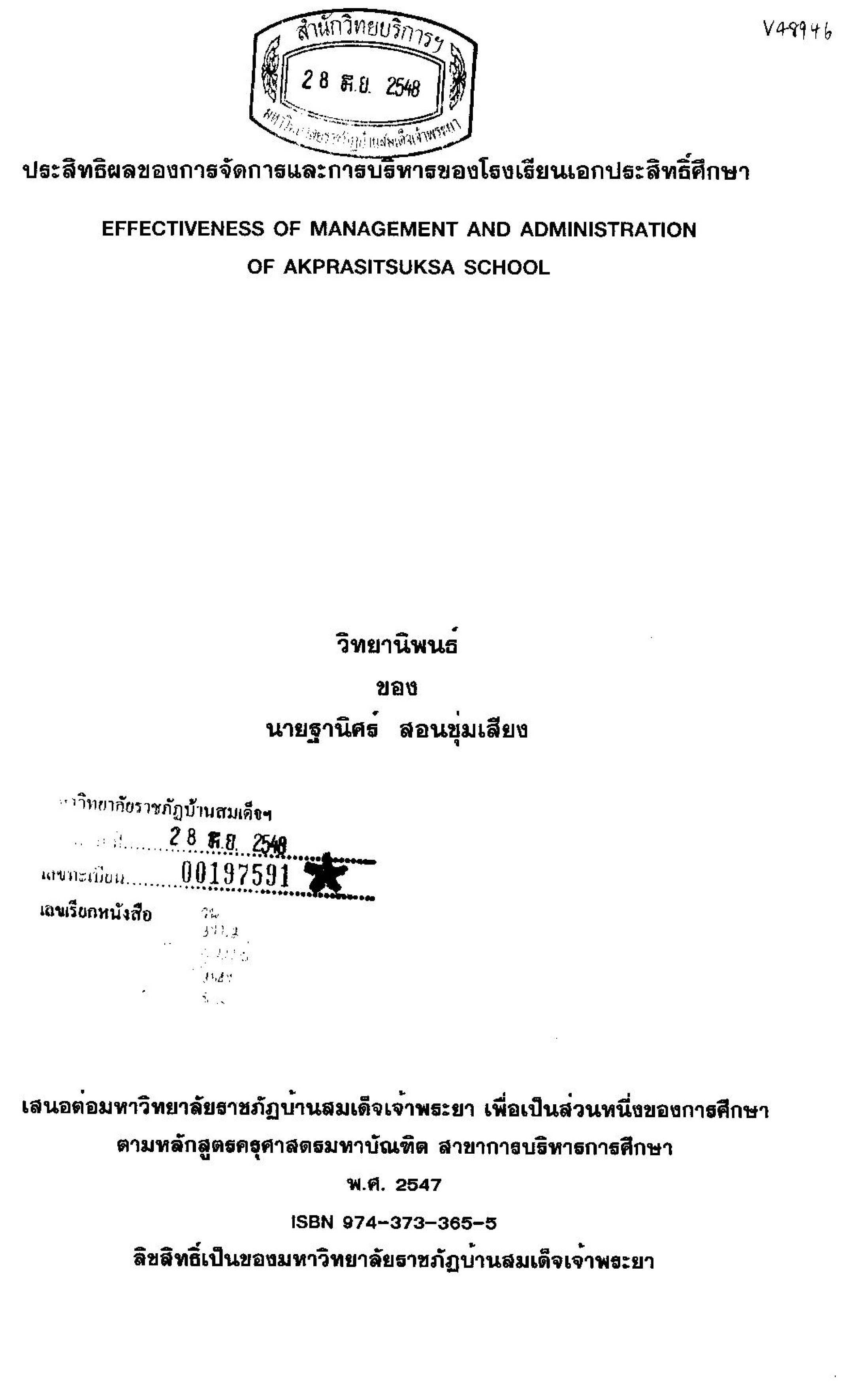 ประสิทธิผลของการจัดการและการบริหารของโรงเรียนเอกประสิทธิ์ศึกษา