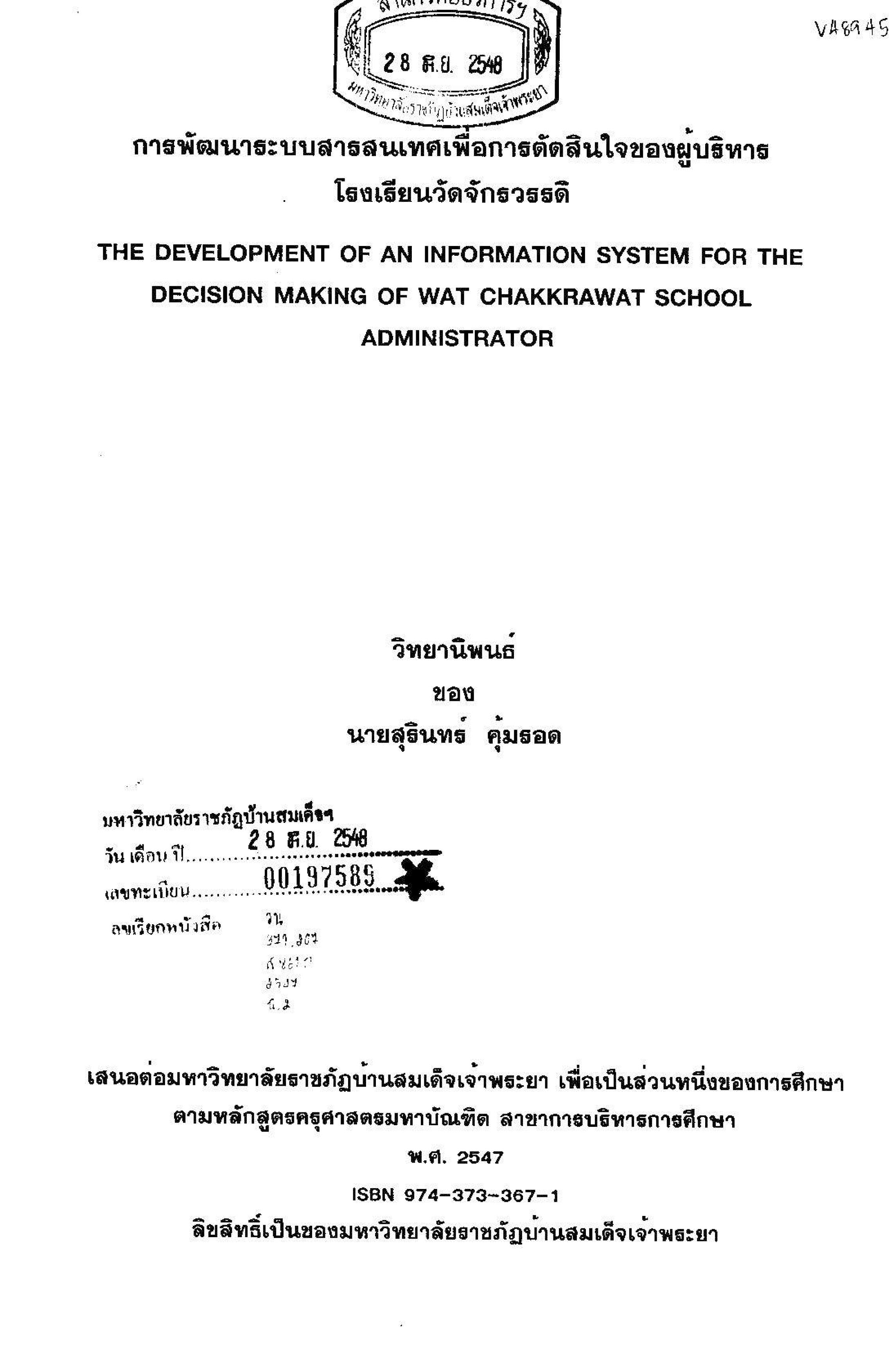 การพัฒนาระบบสารสนเทศเพื่อการตัดสินใจของผู้บริหารโรงเรียนวัดจักรวรรดิ