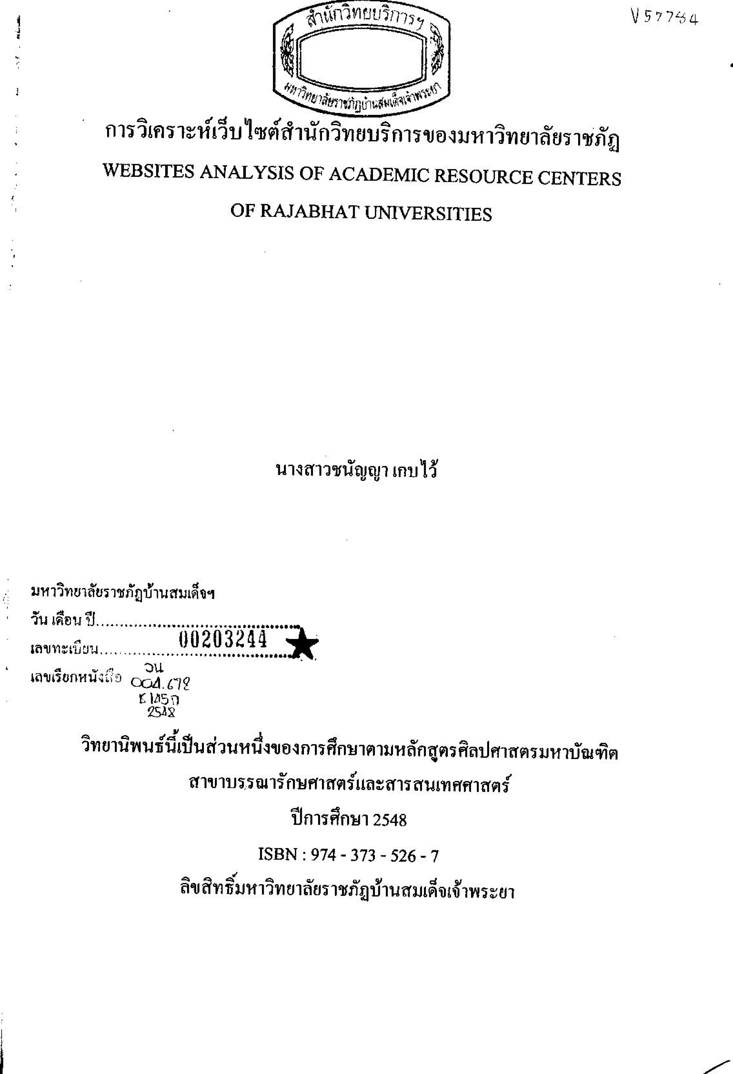 การวิเคราะห์เว็บไซต์สำนักวิทยบริการของมหาวิทยาลัยราชภัฏ
