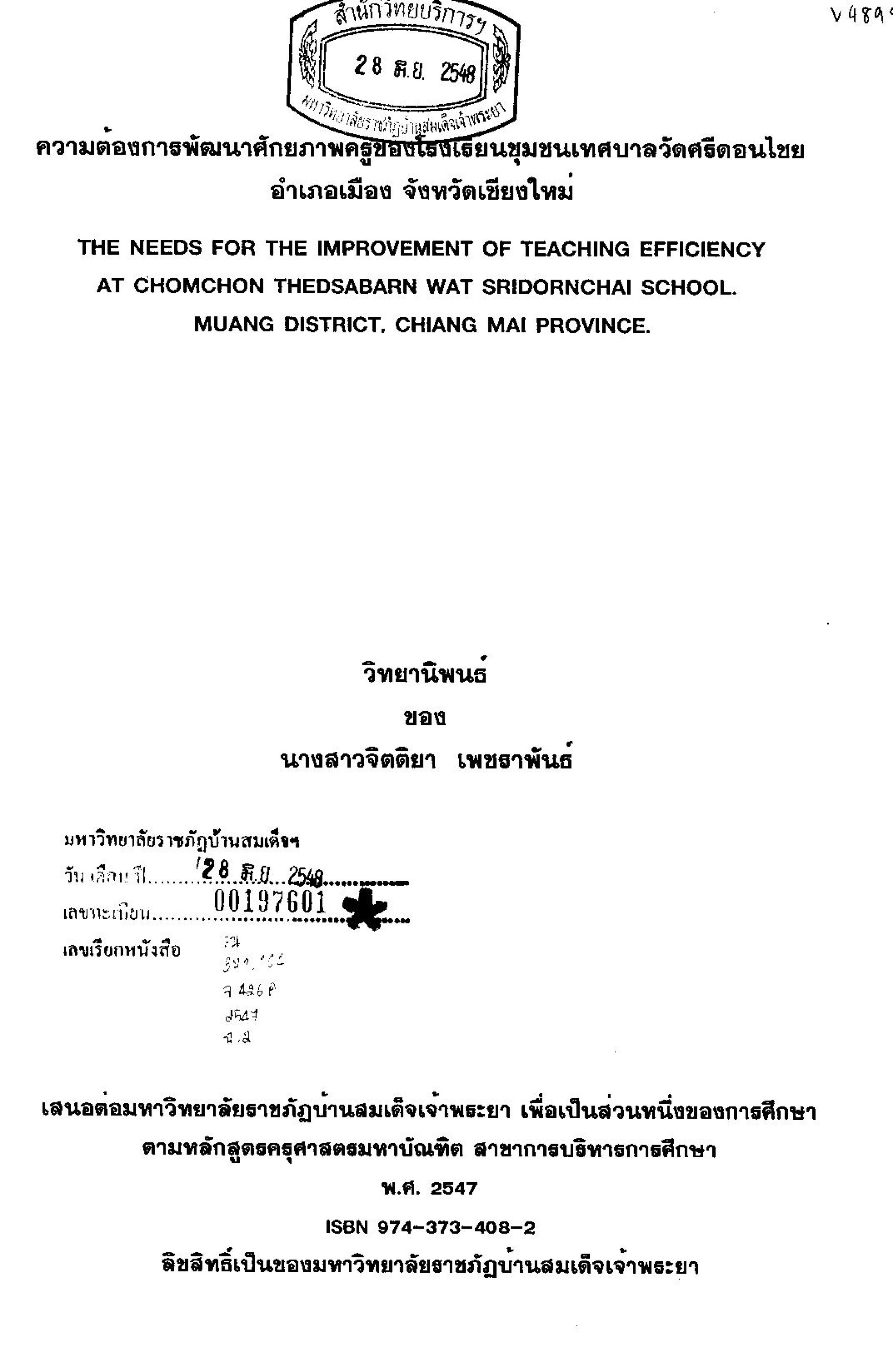 ความต้องการพัฒนาศักยภาพครูของโรงเรียนชุมชนเทศบาลวัดศรีดอนไชย อำเภอเมือง จังหวัดเชียงใหม่
