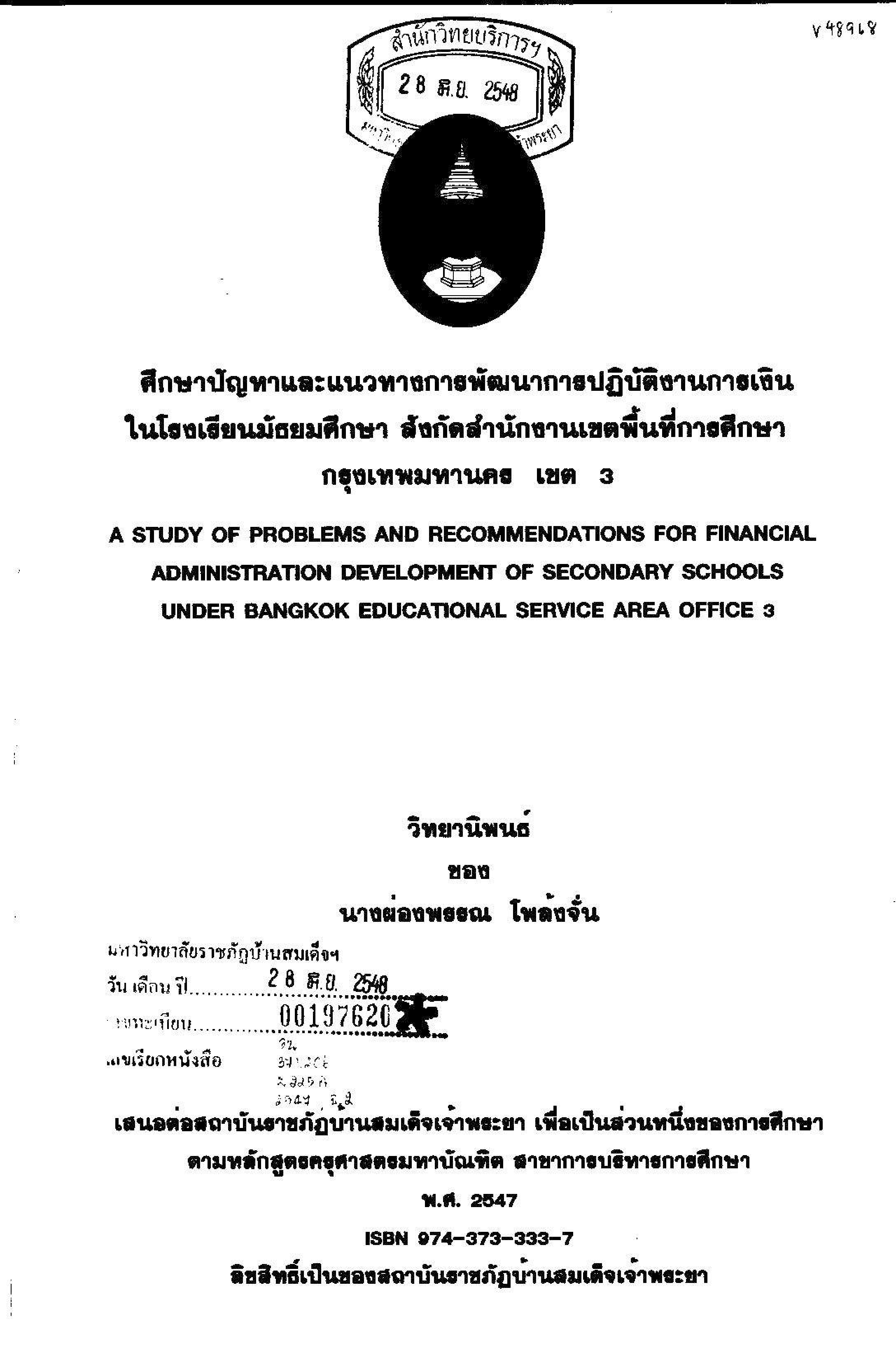 ศึกษาปัญหาและแนวทางการพัฒนาการปฏิบัติงานการเงินในโรงเรียนมัธยมศึกษา สังกัดสำนักงานเขตพื้นที่การศึกษา กรุงเทพมหานคร เขต 3