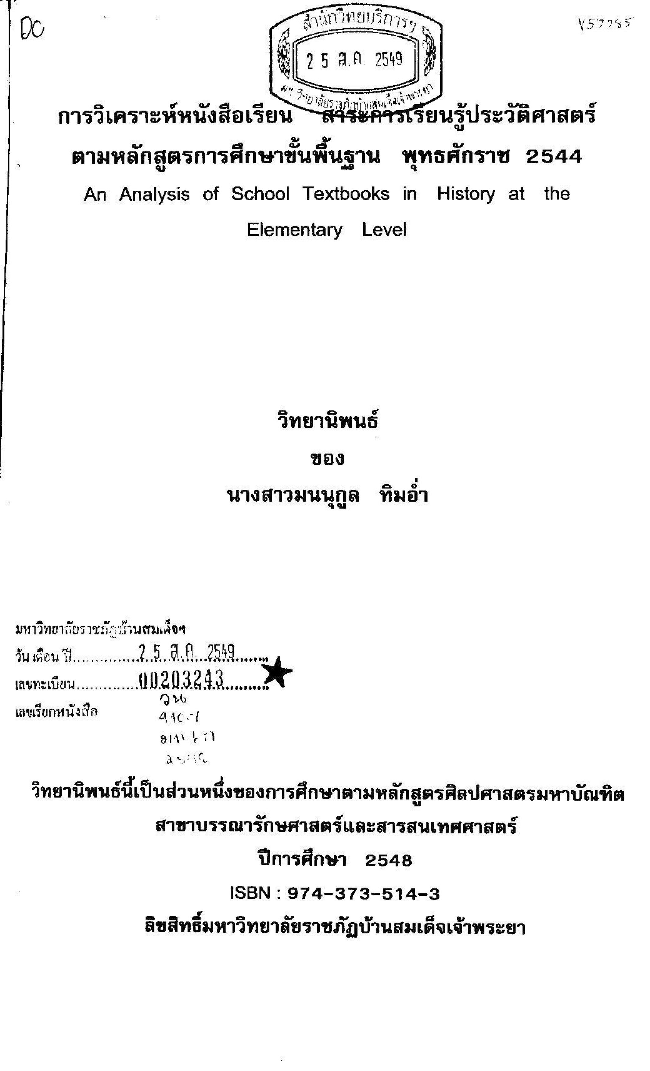 แบบเรียน--การวิเคราะห์--ประวัติศาสตร์
