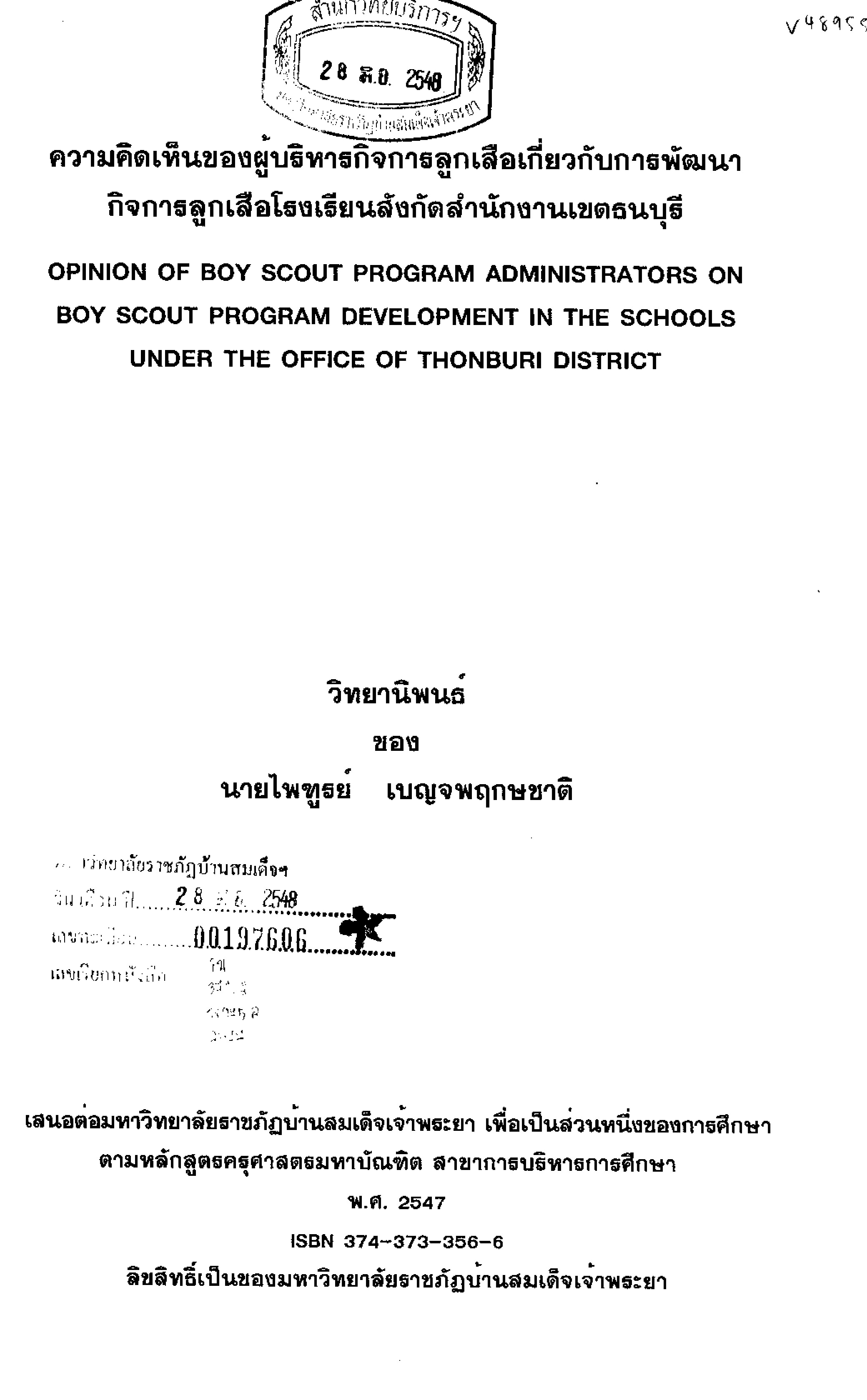 ความคิดเห็นของผู้บริหารกิจการลูกเสือเกี่ยวกับการพัฒนากิจการลูกเสือโรงเรียนสังกัดสำนักงานเขตธนบุรี