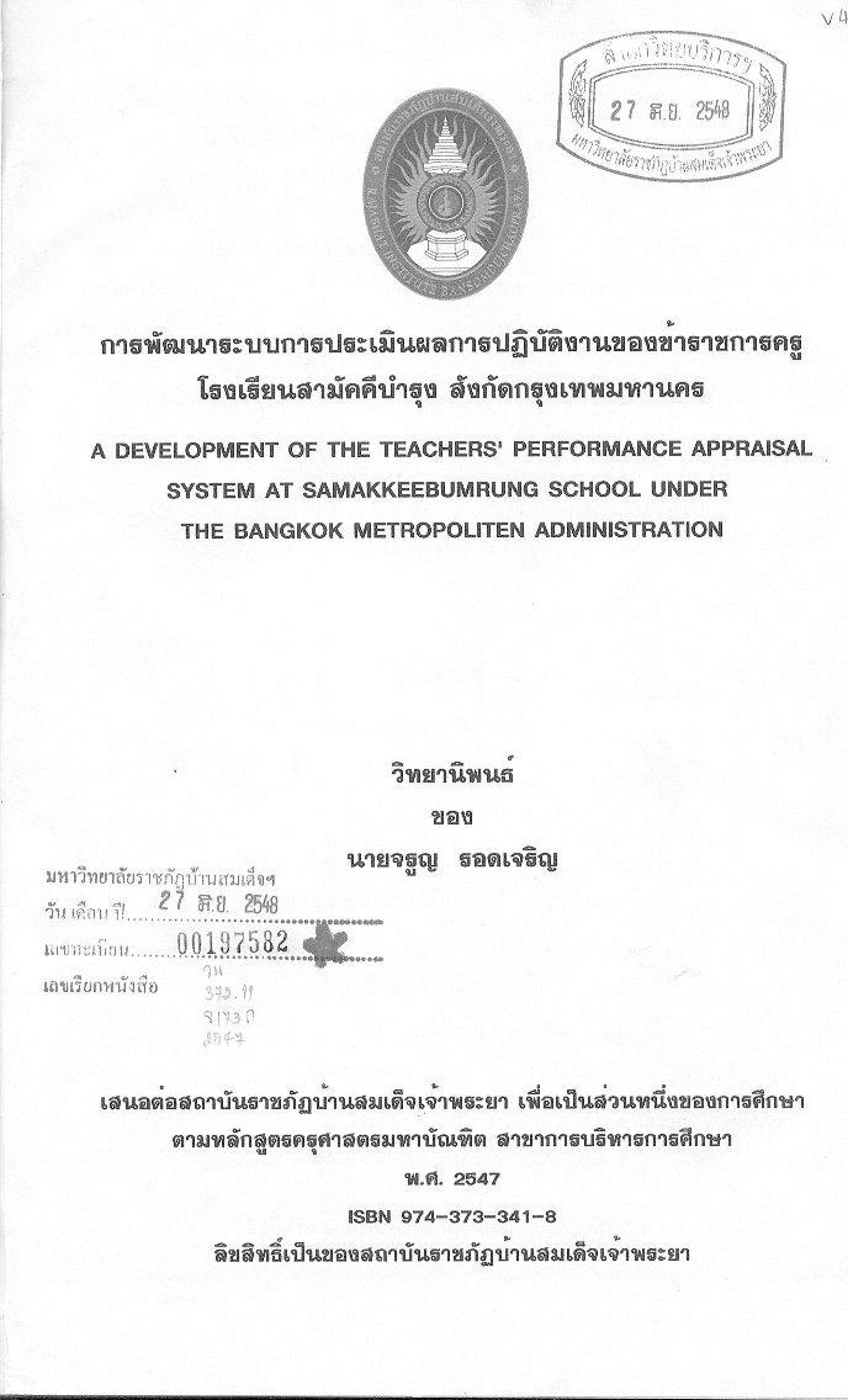 การพัฒนาระบบการประเมินผลการปฏิบัติงานของข้าราชการครูโรงเรียนสามัคคีบำรุง สังกัดกรุงเทพมหานคร